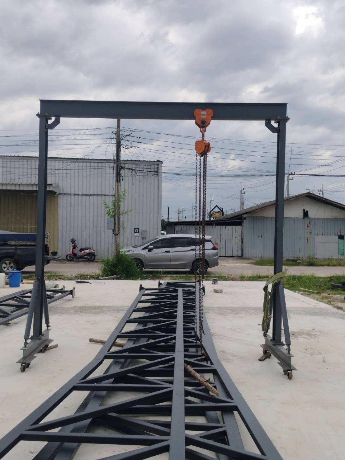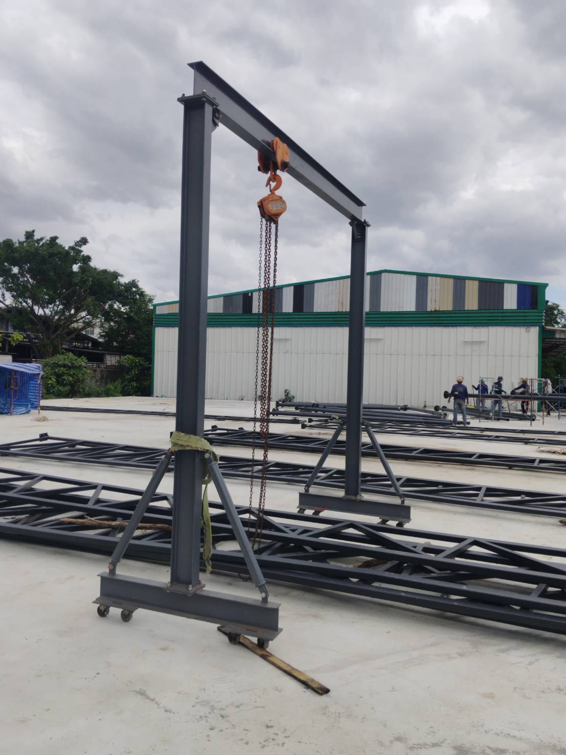 เครนขาเอเฟรมแบบเข็น ขนาด 1 ตัน กว้าง 3 เมตร มีรอกโซ่ธรรมดา (1 ton portable A-frame gantry crane with 3 meter span and a manual chain hoist)