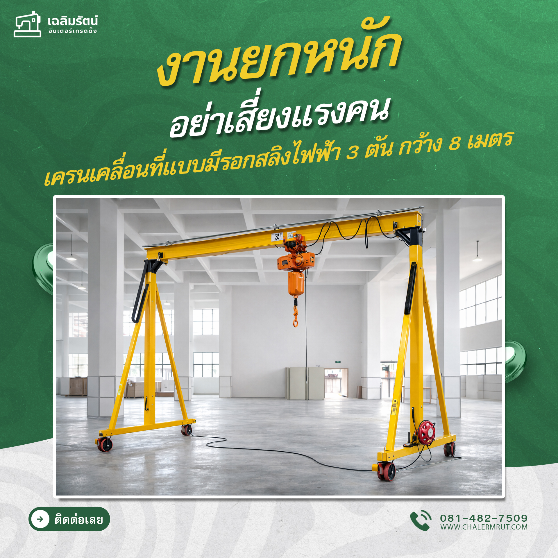 - เครนโครงเคลื่อนที่สามารถติดตั้งรอกโซ่และรอกสลิงได้