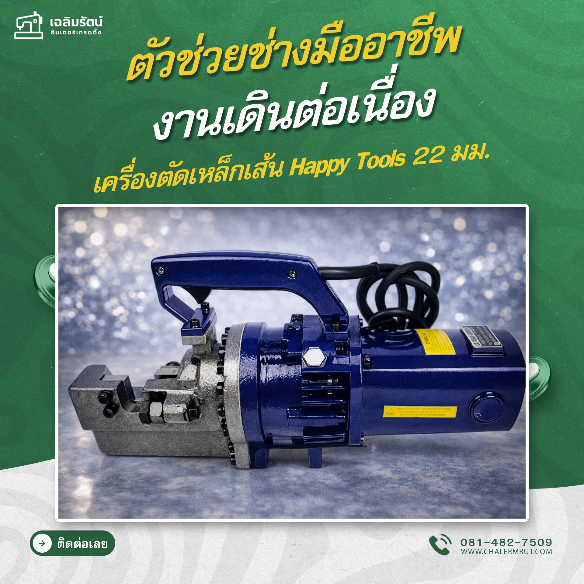 เครื่องตัดเหล็กเส้น Happy Tools 22 มิลลิเมตร รุ่น RC-22 ช่วยให้การตัดเหล็กง่ายขึ้น รวดเร็วขึ้น และลดค่าใช้จ่าย เหมาะสำหรับงานก่อสร้างและอุตสาหกรรมที่ต้องการประสิทธิภาพสูง