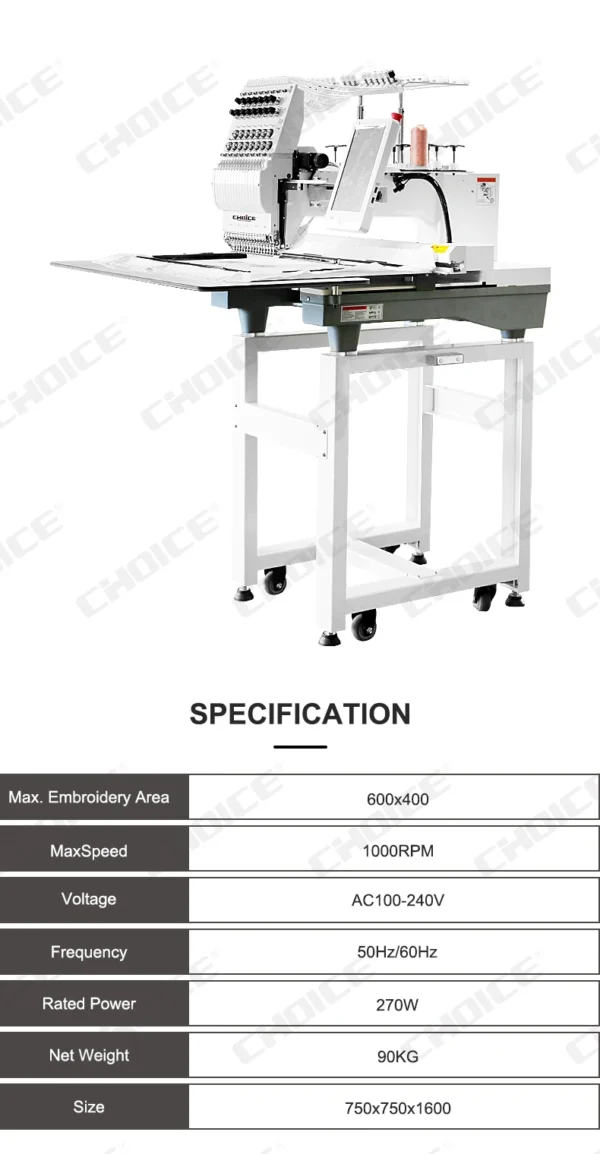 จักรปักคอมพิวเตอร์ CHOICE รุ่น GC-MINI1201 เป็นเครื่องปัก 1 หัว 12 เข็ม ที่สามารถ ปรับลดเฟรมโต๊ะ รองรับการทำงานที่หลากหลาย เหมาะสำหรับ ธุรกิจจักรปักขนาดเล็ก, ร้านปักเสื้อสำเร็จรูป, หมวก, ผ้าเป็นชิ้น และงานปักอื่น ๆ ตัวเครื่องถูกออกแบบมาให้มีขนาดกะทัดรัด แต่ยังเป็นจักรปักอุตสาหกรรมที่มีประสิทธิภาพสูง มาพร้อม เทคโนโลยีอัจฉริยะ ที่ช่วยให้การปักงาน แม่นยำ รวดเร็ว และสะดวกต่อการใช้งาน