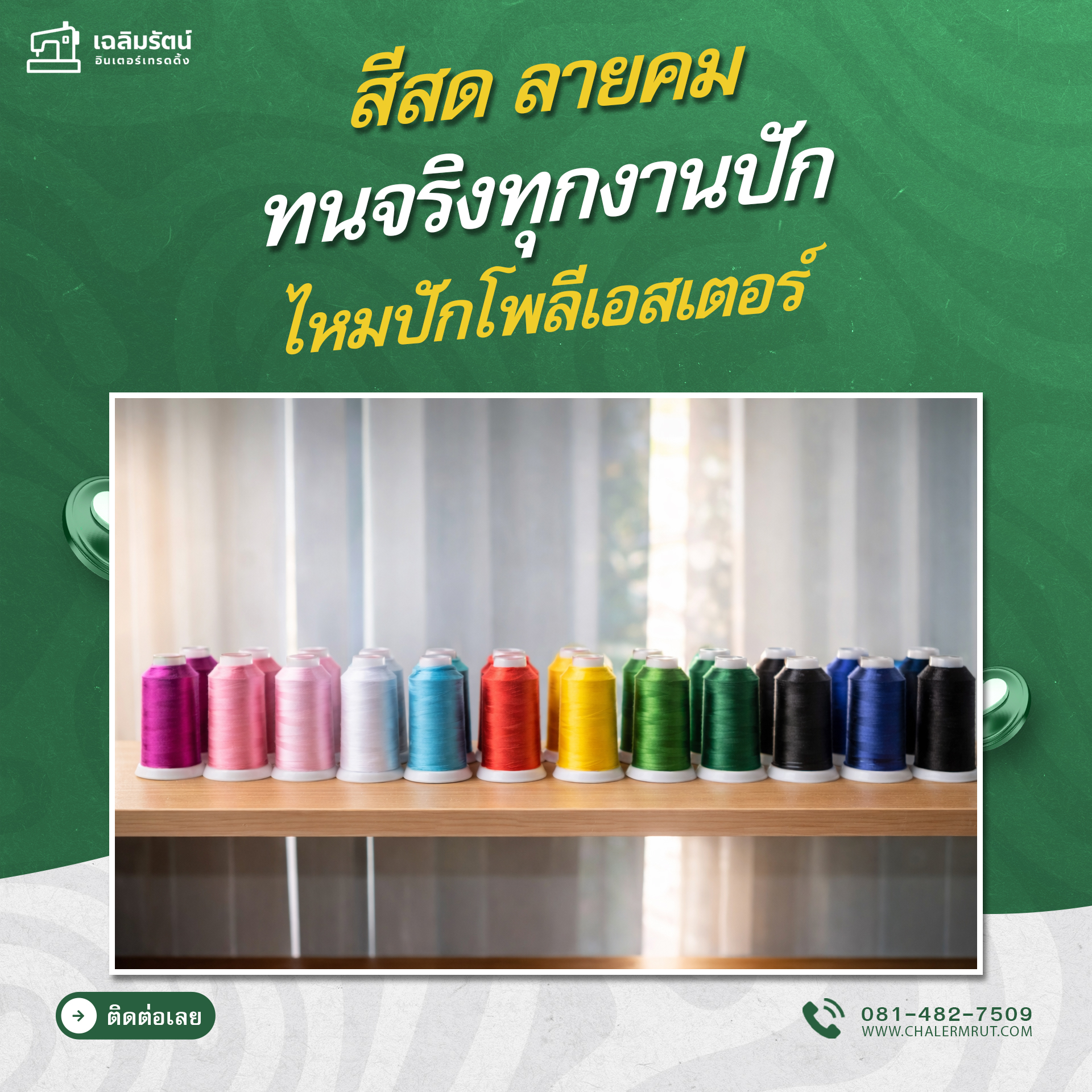 ไหมปักโพลีเอสเตอร์ (Polyester Embroidery Thread) เป็นไหมสังเคราะห์ที่ผลิตจากเส้นใยโพลีเอสเตอร์ มีคุณสมบัติเด่นในด้านความแข็งแรง ทนความร้อน และสีสันสดใส จึงเหมาะกับงานปักที่ต้องการความทนทานสูง เช่น งานเสื้อผ้า เสื้อยูนิฟอร์ม โลโก้ หรือของใช้ที่ซักบ่อย