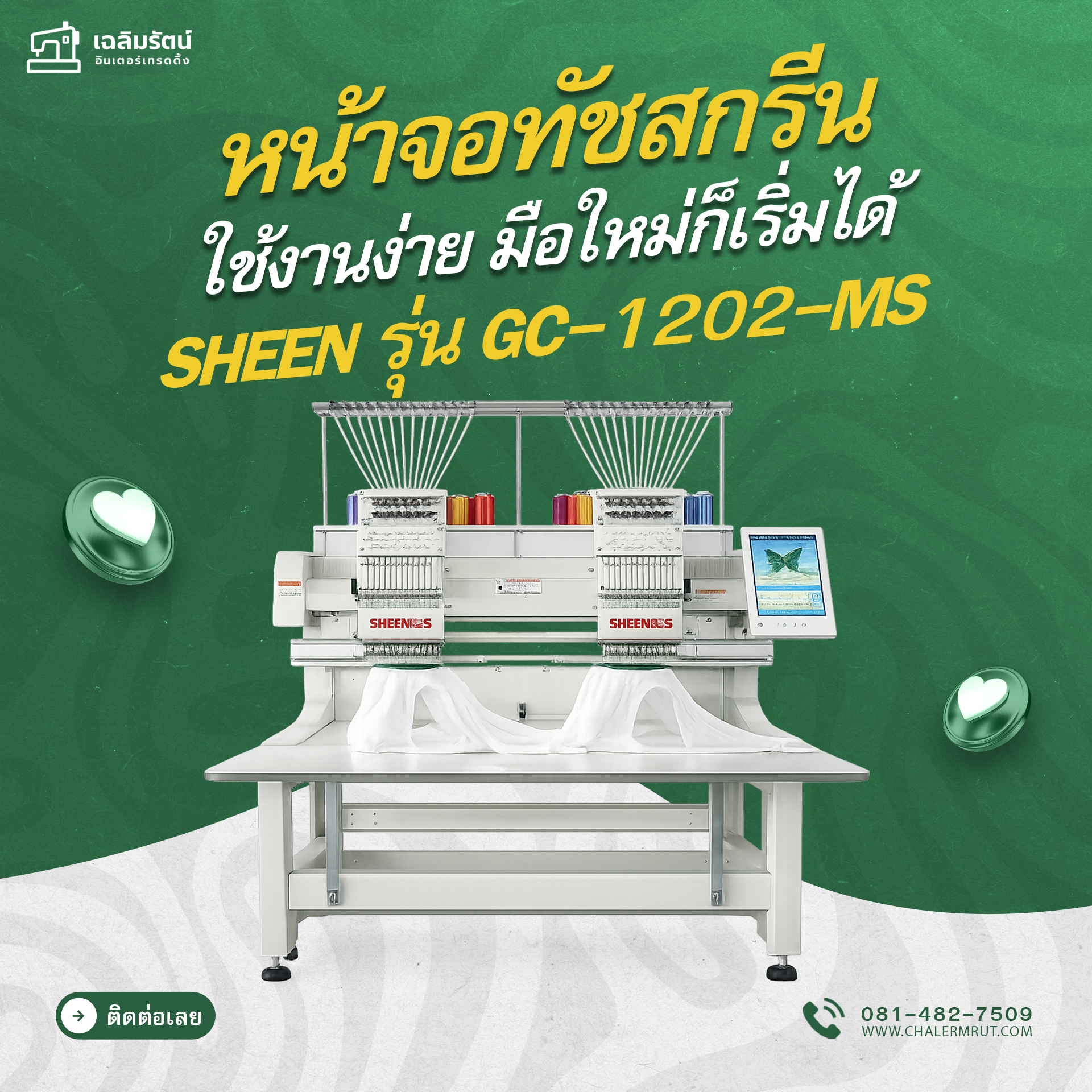 จักรปักคอมพิวเตอร์ SHEEN รุ่น GC-1202-MS( ลดโต๊ะได้ 2 หัว 12 เข็ม) ปรับลดเฟรมโต๊ะ รองรับงานปักที่หลากหลาย